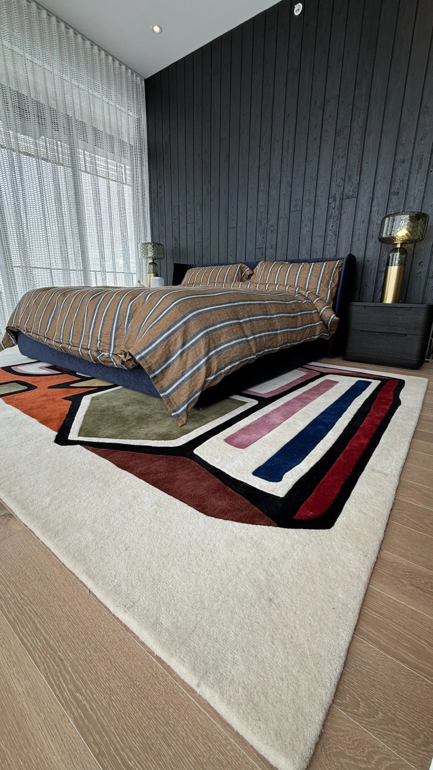 A refined Old Port residence where Philippe Harvey Design collaborated with Giada to create custom rugs that enhance the sophisticated urban living spaces.